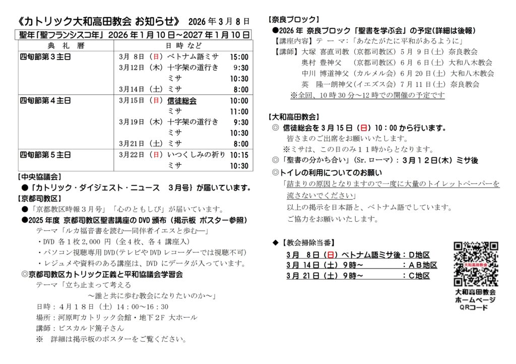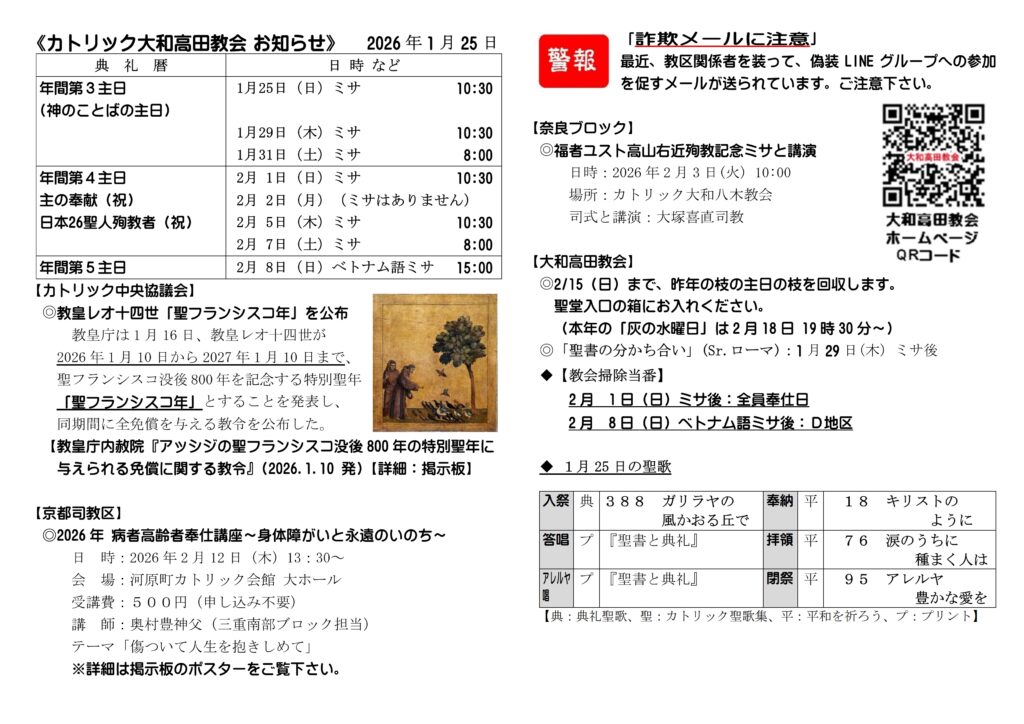 • ようこそ「旅路の母」カトリック大和高田教会へ